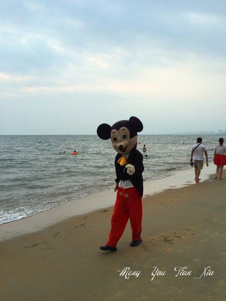 下午6点,出酒店往右边走,到巷子口往左边拐,不要过马路,直走约100米,到达仙居府,泰式自助餐,88元/人,不是很正宗,海鲜糕点菜肴,现烤披萨最好吃。吃过晚餐,出饭店大门,过马路2分钟就到海边,消食散步,返回酒店。
